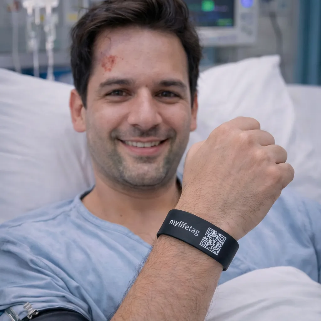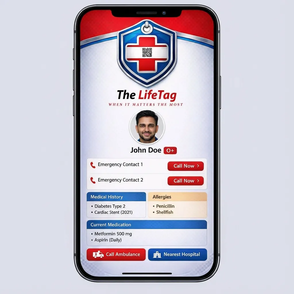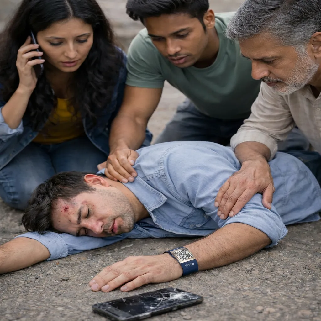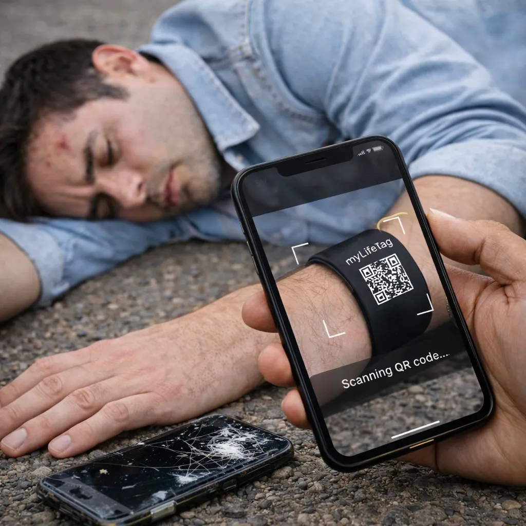 A neighbour collapsed during a walk. His LifeTag revealed his condition and emergency contact within seconds.